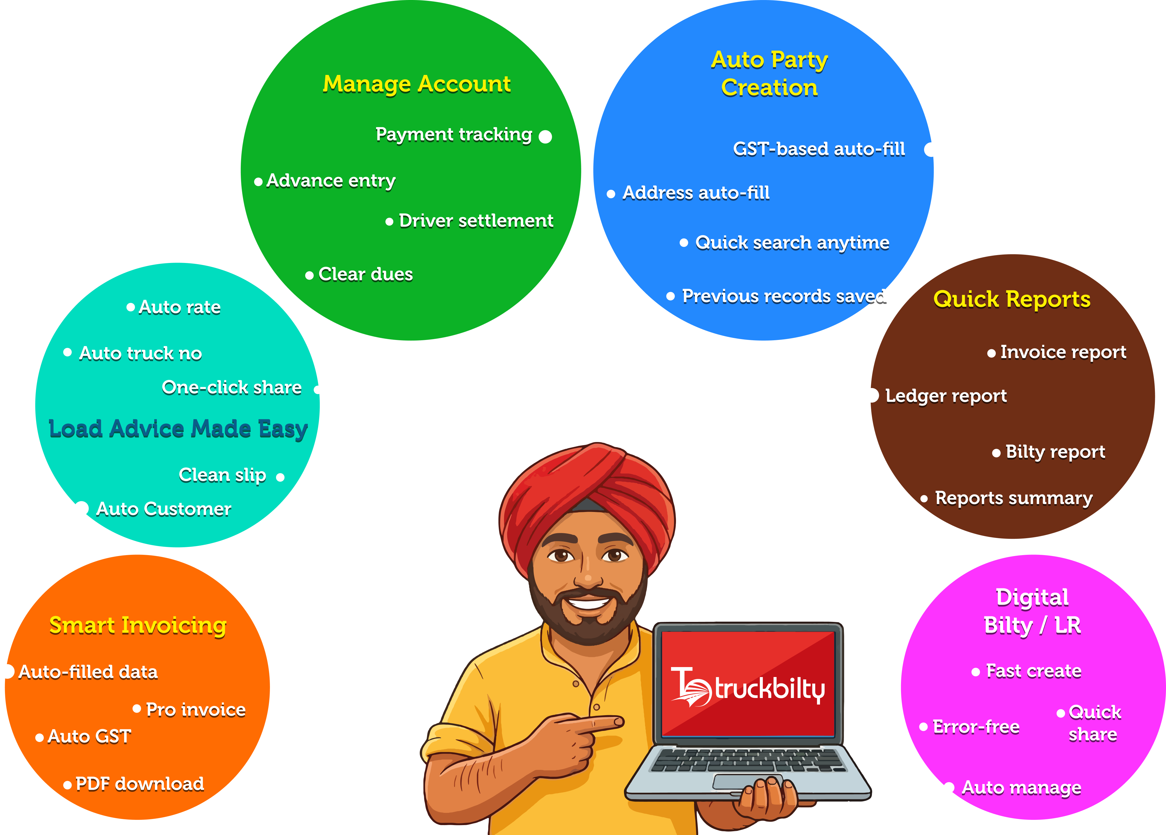 Truck Bilty Offers Online Software For Transporters & Brokers for Creating and managing Loading Slip, Bilty/LR, Invoice. you can create professional looking Documents form your Phone or Computer and Share to party by Email or WhatsApp